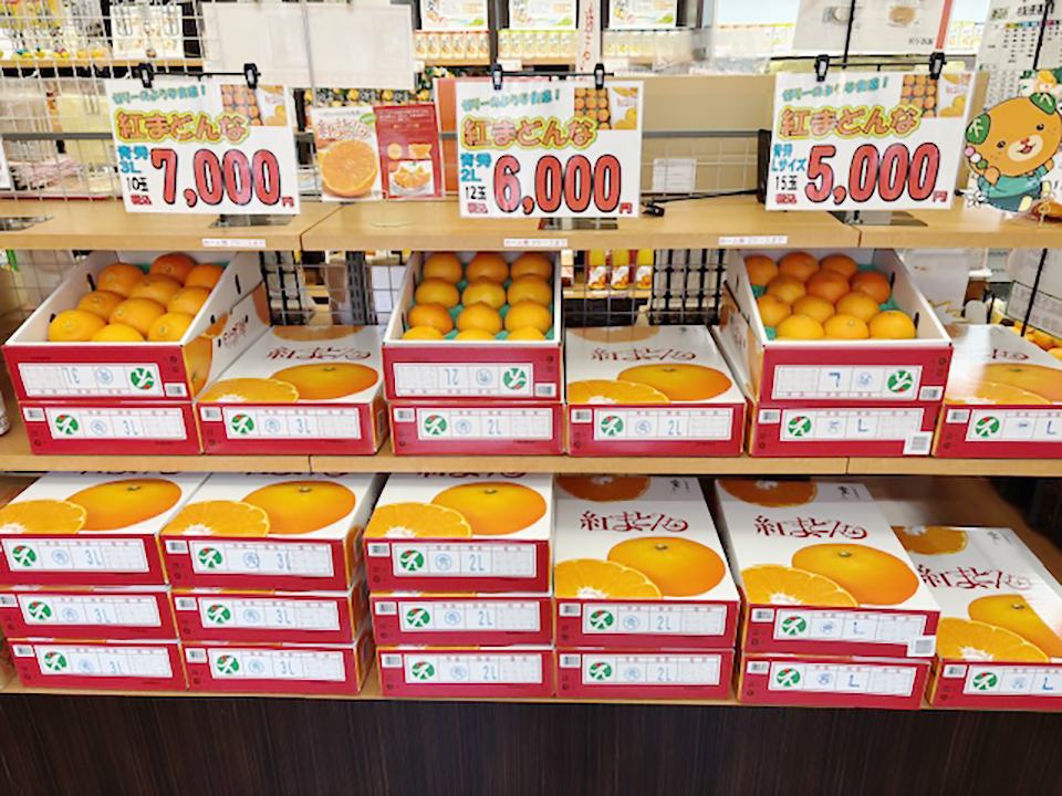 そして、トロンととろけるゼリーのような食感、紅い果肉からあふれる甘い果汁と豊かな香り、愛媛生まれのオリジナル品種「紅まどんな」!箱入り好評販売中です!毎日オープンの8:30~売り切れまで販売しています。