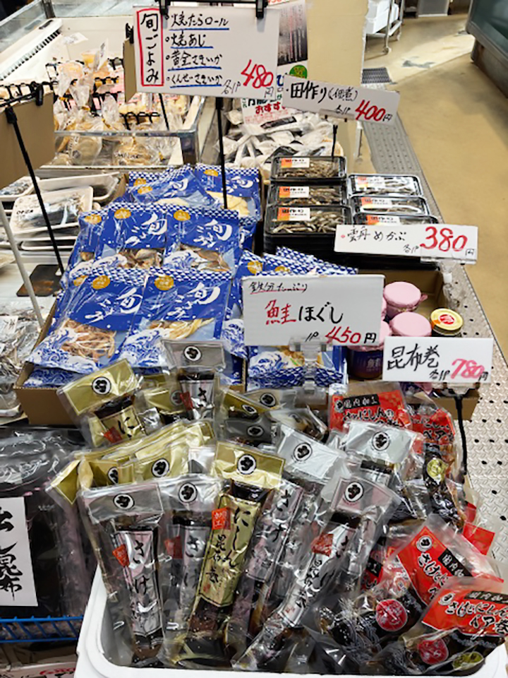 「太陽市」の「鮮魚コーナー」には、年末の「おせちやおもてなし珍味」コーナーがあります!