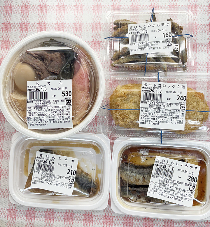 バラエティーに富んだ「手作りお弁当」「手作りお惣菜」が大人気!「太陽市」のお惣菜コーナー「愛菜広場」(あいさいひろば)では、この季節、各種具入りのおでん、豚汁も人気です!