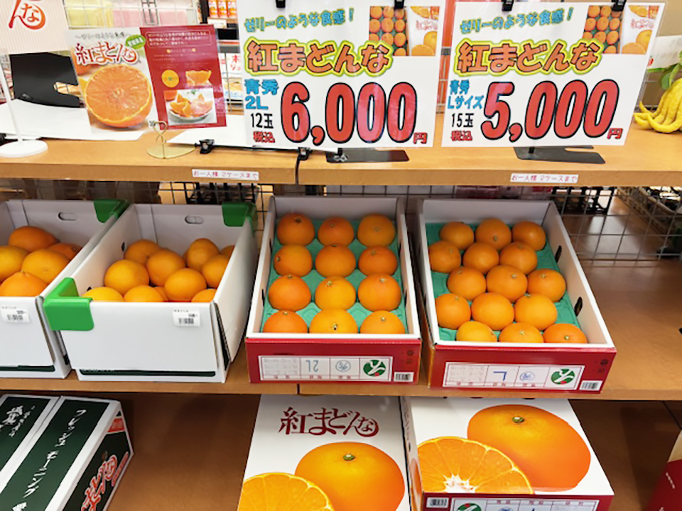 そして、とろけるゼリーのような食感、あふれる果汁と豊かな香り、愛媛生まれのオリジナル柑橘「紅まどんな」!箱入り好評販売中です!毎日オープンの8:30~売り切れまで販売しています。