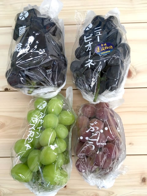 ニューピオーネ、藤稔、シャインマスカット、安芸クイーン