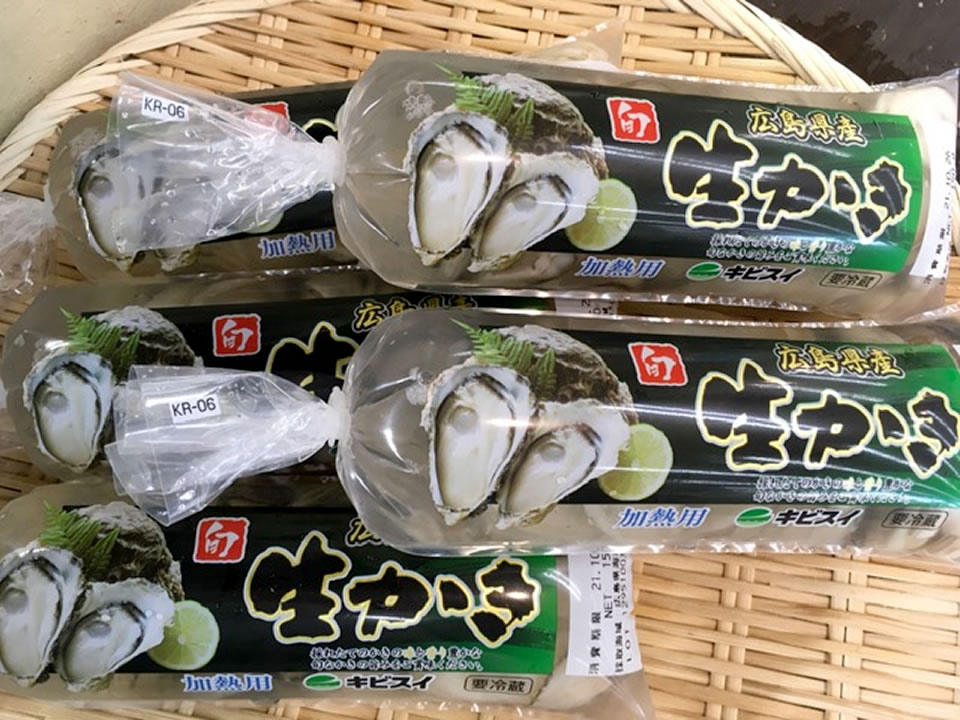 新鮮さと豊富さが売り!「鮮魚コーナー」に、グリコーゲンやタウリン、亜鉛が豊富な“海のミルク”広島県産 生カキ(加熱用)あります!カキ鍋、シチュー、天ぷらフライ、柿と長ネギの卵とじ、おいしいですよ!