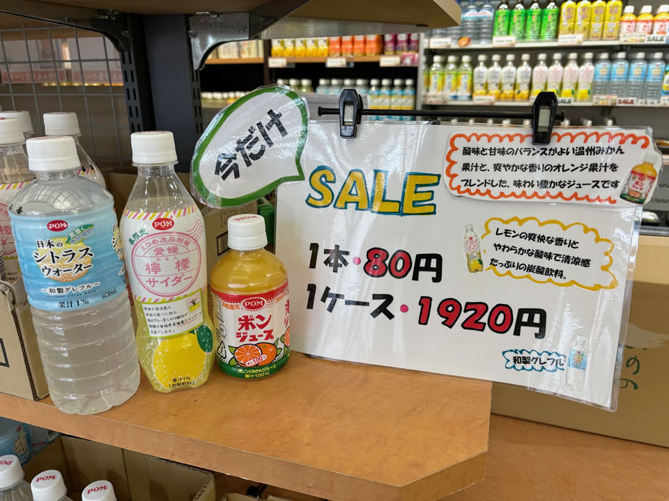 ★今だけSALE!「POM日本のシトラスウォーター」、「POMえひめ逸品柑橘 愛媛 檸檬(れもん)サイダー」、「POMポンジュース」が、とてもお安くなっています!