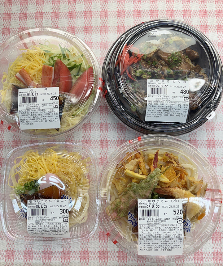 冷麺、冷やしうどん(ミニ)、冷ぶっかけうどん、炭火やきとり丼